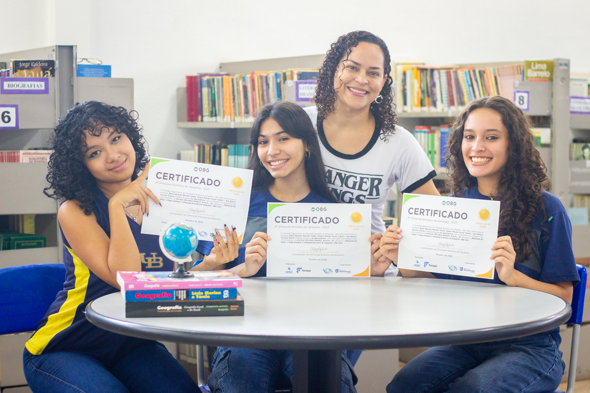 “Ficamos felizes demais com a medalha de ouro. Mas isso só aconteceu porque a gente se dedicou. Nossa professora também foi muito importante nesse primeiro momento. Ela passava material de estudo e atividades para gente se preparar para as provas. Além de toda orientação, nos ajudou a se sentir mais seguras na hora de responder as perguntas”, explica a estudante Helena.