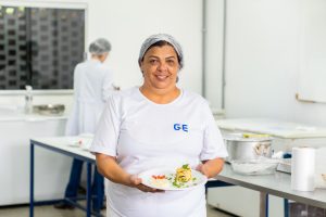 A merendeira celebrou seus 17 anos de profissão, seguindo o legado da mãe, e o prazer de trabalhar com alimentação escolar. “Minha mãe era cozinheira, e eu segui os passos dela. Cada prato que preparo é uma forma de lembrar dos momentos em que cozinhamos juntas. Tenho muito orgulho de ser merendeira. Se eu tiver outra vida, quero seguir nessa profissão de novo”, contou.