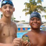 Dois jovens talentos da natação do Distrito Federal, Adryan Eduardo dos Santos, 11 anos, e Luiz Fernando dos Santos, 13 anos, estudantes da rede pública do DF, que representam o Centro Olímpico de São Sebastião, subiram no lugar mais alto do pódio nas Paralimpíadas Escolares, nessa quinta-feira (31). Com isso, os atletas garantiram a tão desejada vaga na etapa nacional do torneio, que ocorrerá em São Paulo, no mês de novembro.