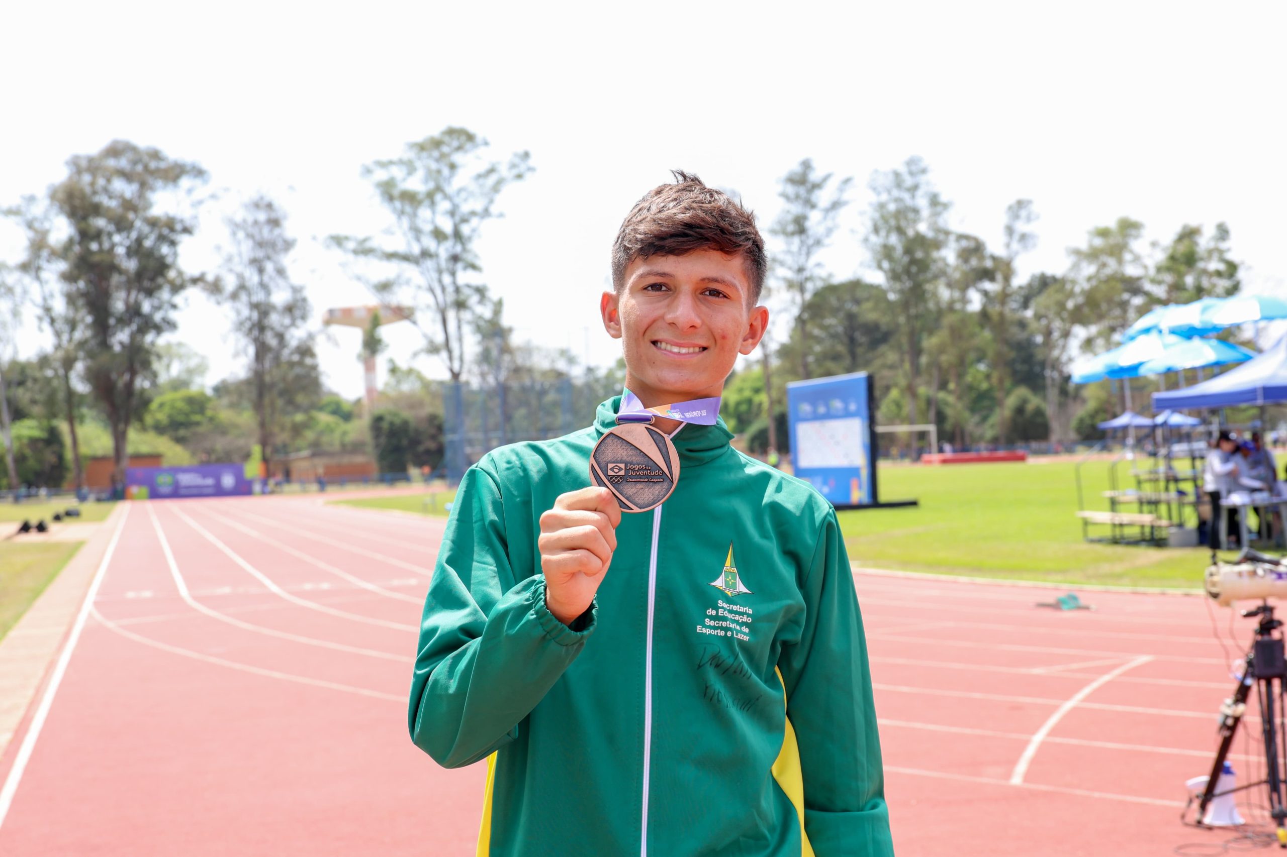 O atleta Josué Barros Natividade, 15, é estudante do Centro de Ensino Fundamental (CEF) 05 de Sobradinho. O jovem, que treina há 6 anos, falou de sua expectativa para os jogos logo na primeira reunião da delegação, dia 23 de agosto. “Espero me classificar na minha modalidade, que é o atletismo, e trazer medalha pro DF“, disse. Sendo um atleta determinado e esforçado, foi exatamente isso que ele fez. Debaixo do sol forte e de uma temperatura de 33⁰ graus, o atleta correu três mil metros na pista quente e, após muito esforço e suor, se classificou em terceiro lugar na sua primeira participação nos Jogos da Juventude – ficando entre os melhores atletas do país na faixa de 15 à 17 anos.