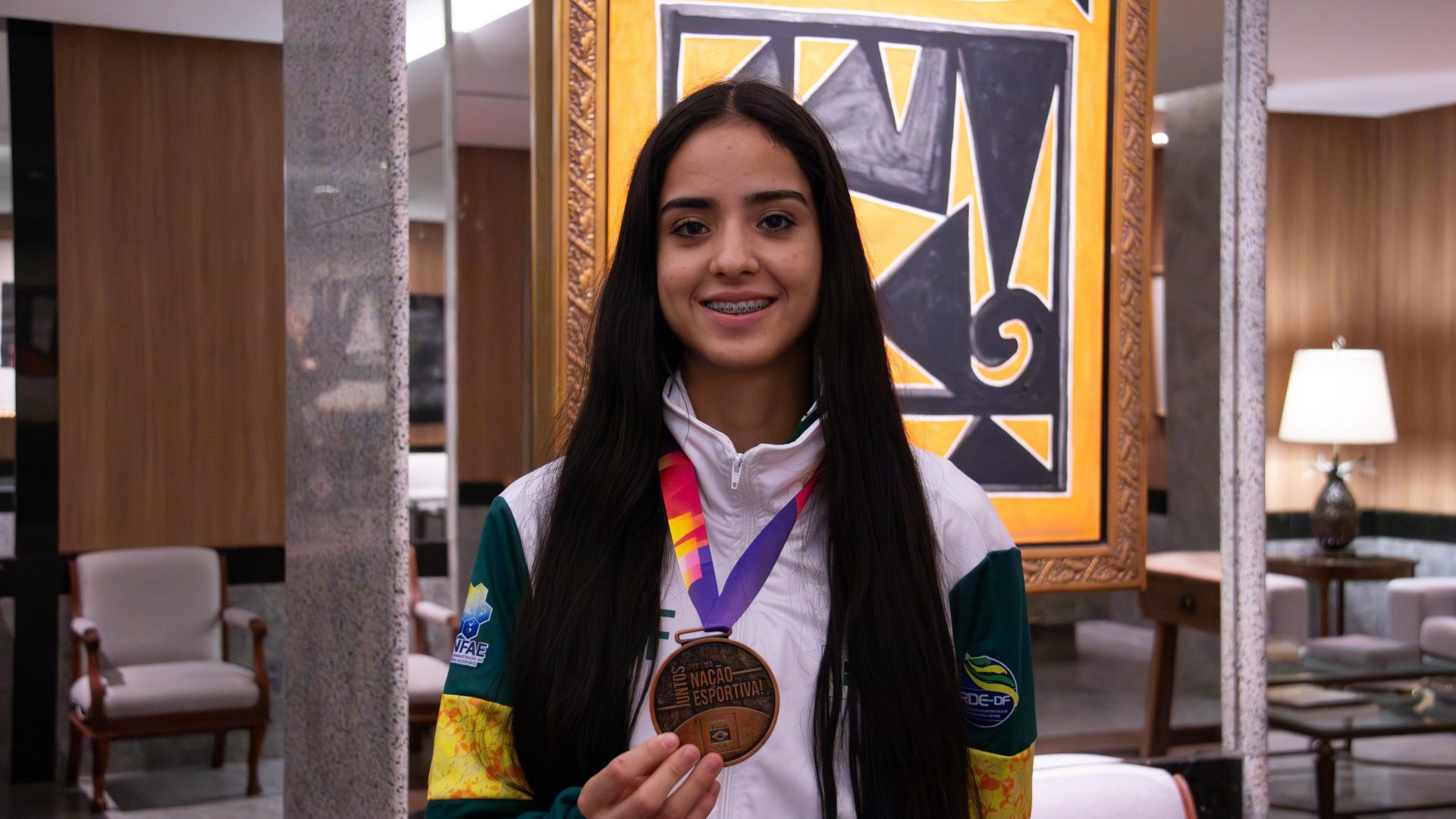 Rafaela Cristina, de 17 anos, abriu as conquistas com uma medalha especial de bronze na categoria até 49kg. A aluna da rede pública de ensino do DF conheceu a modalidade aos nove anos, por incentivo do pai, que havia praticado a luta na adolescência. Desde então, ela e os irmãos mergulharam no esporte, conquistando títulos e evoluindo a cada campeonato.