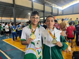 Com apenas 14 anos, o estudante Pedro Henrique Oshiro, do CEF 102 Norte, também fez história ao conquistar o primeiro lugar na série ouro. Atleta de karatê desde os 12 anos, ele já acumula experiências em competições nacionais e internacionais, como o Sul-Americano e o Pan-Americano. Depois de superar uma lesão que o afastou de uma edição anterior dos JEB’s, Pedro celebrou com emoção o ouro conquistado em 2025.