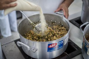 Muita emoção na manhã de disputa em Brazlândia. A cozinheira Leudilene Lima Rocha, de 40 anos, do Centro Educacional (CED) 04, preparou uma “galinhada nutritiva”, nome escolhido por ela para enriquecer ainda mais o valor nutricional da proposta. A receita tradicional preferida dos estudantes ganhou um toque especial com brócolis, couve, cenoura, milho verde, salada de beterraba, tomate e cebolinha para acompanhar.