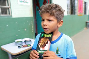 O estudante Heitor Davi Brandão de Carvalho, de 5 anos, lembrou dos três cachorrinhos que tem em casa — Mel, Pequeno e Negão — quando a campanha passou pela sala de aula. “Não pode abandonar os animais, porque eles ficam com fome, podem morrer sem água e sem comida. Se não quiser, coloca para adoção, não pode maltratar eles. Isso dá até prisão”, observou. O colega Miguel de Fernandes Albuquerque, 6, contou que tem uma cachorrinha chamada Hello e logo complementou: “Não pode deixar o cachorrinho na rua, ele fica com medo. Os animais merecem ser bem cuidados”.