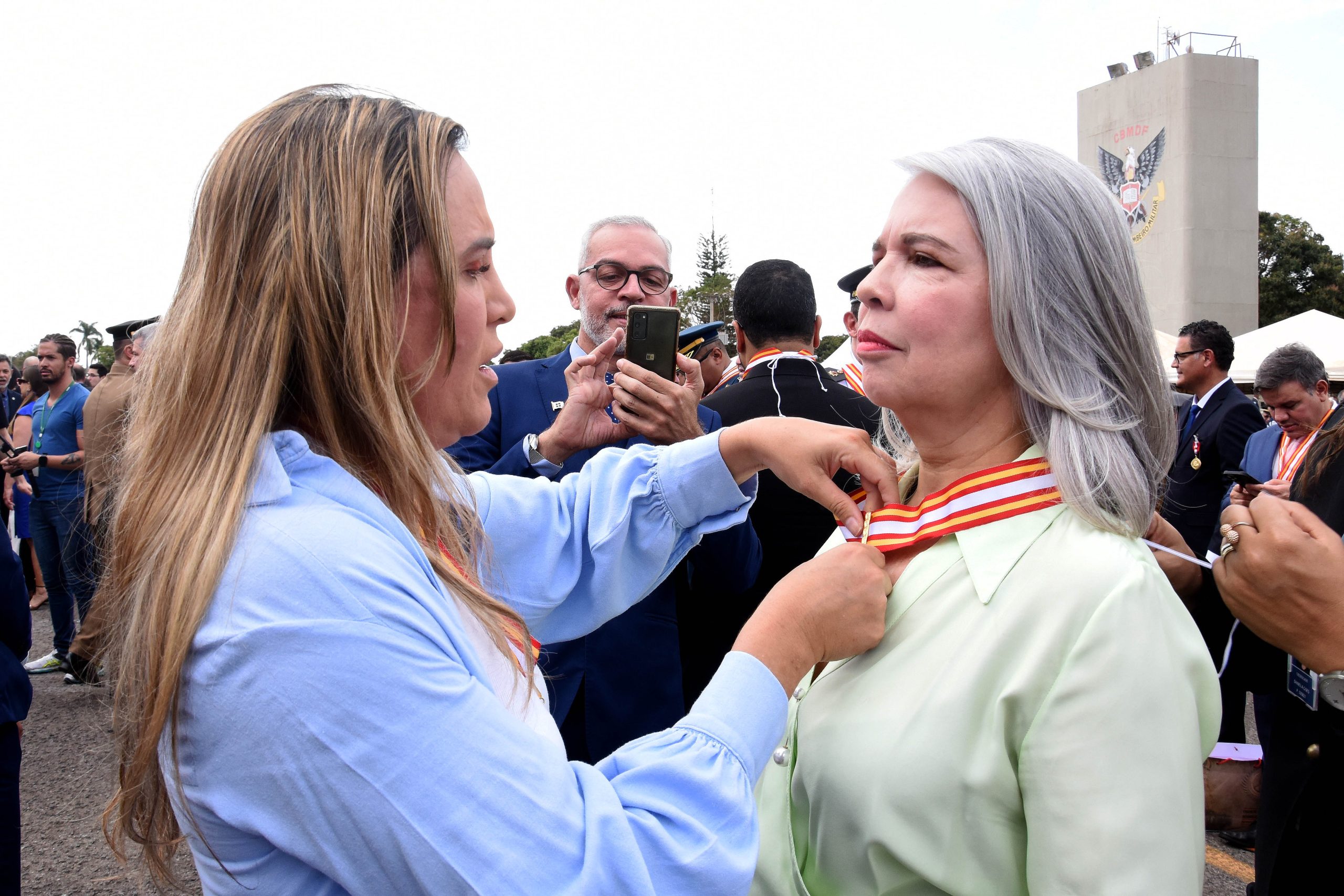 Gestores da Secretaria de Educação receberam, nesta quinta-feira (24), a Medalha Ordem do Mérito Bombeiro Militar – Imperador Dom Pedro III. A medalha é a mais elevada comenda da corporação. A secretária de Educação do DF, Hélvia Paranaguá, recebeu a condecoração das mãos da vice-governadora, Celina Leão, que representou o chefe do Poder Executivo na cerimônia.