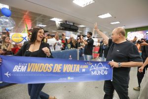 O retorno dos estudantes ao Brasil marcou o encerramento da primeira edição do Pontes para o Mundo, programa de intercâmbio internacional criado pelo Governo do Distrito Federal (GDF). Na chegada do último grupo ao Aeroporto Internacional de Brasília, formado por 27 alunos e dois servidores da Secretaria de Educação (SEEDF), o governador Ibaneis Rocha e a primeira-dama Mayara Noronha Rocha estiveram presentes para recepcionar os participantes após cerca de 17 semanas de imersão no Reino Unido.