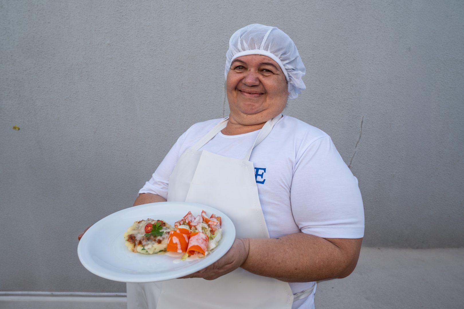 A outra selecionada, Rosângela da Silva, apresentou uma elogiada cestinha de batata com ragu de carne moída. Ela é merendeira há três anos e cursa o 2º semestre da faculdade de nutrição. Feliz com a vitória, comentou sobre a expectativa para as próximas fases da competição. “É muito bom, porque eu já estive em uma semifinal em outra edição. Mas nas próximas etapas, acho que vou ficar nervosa, mas vou seguir o mesmo ritmo”, concluiu.