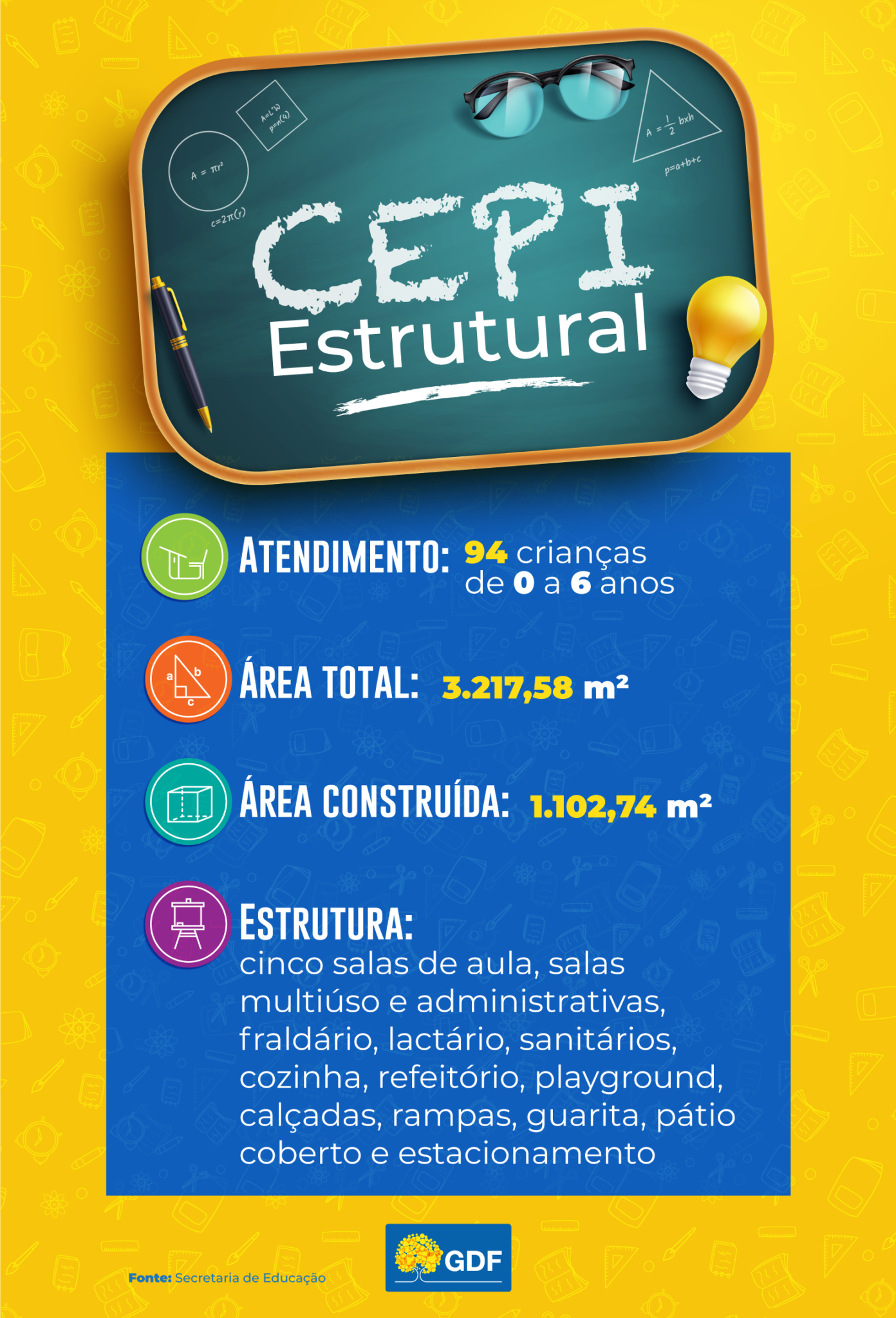“O Cepi da Estrutural desempenhará um papel crucial no desenvolvimento dessas crianças, criando uma base sólida para seus futuros. Será um ambiente que promoverá divertimento saudável, socialização e preparação para a vida em sociedade”, acrescenta o subsecretário de Infraestrutura Escolar, Leonardo Balduino.