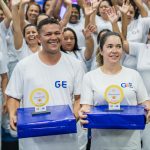 O momento mais especial foi quando as alunas levantaram a faixa para homenagear a cozinheira, “O CEF 12 Taguatinga tem a melhor merendeira do DF! Vai Eliete! A vitória é sua!”.