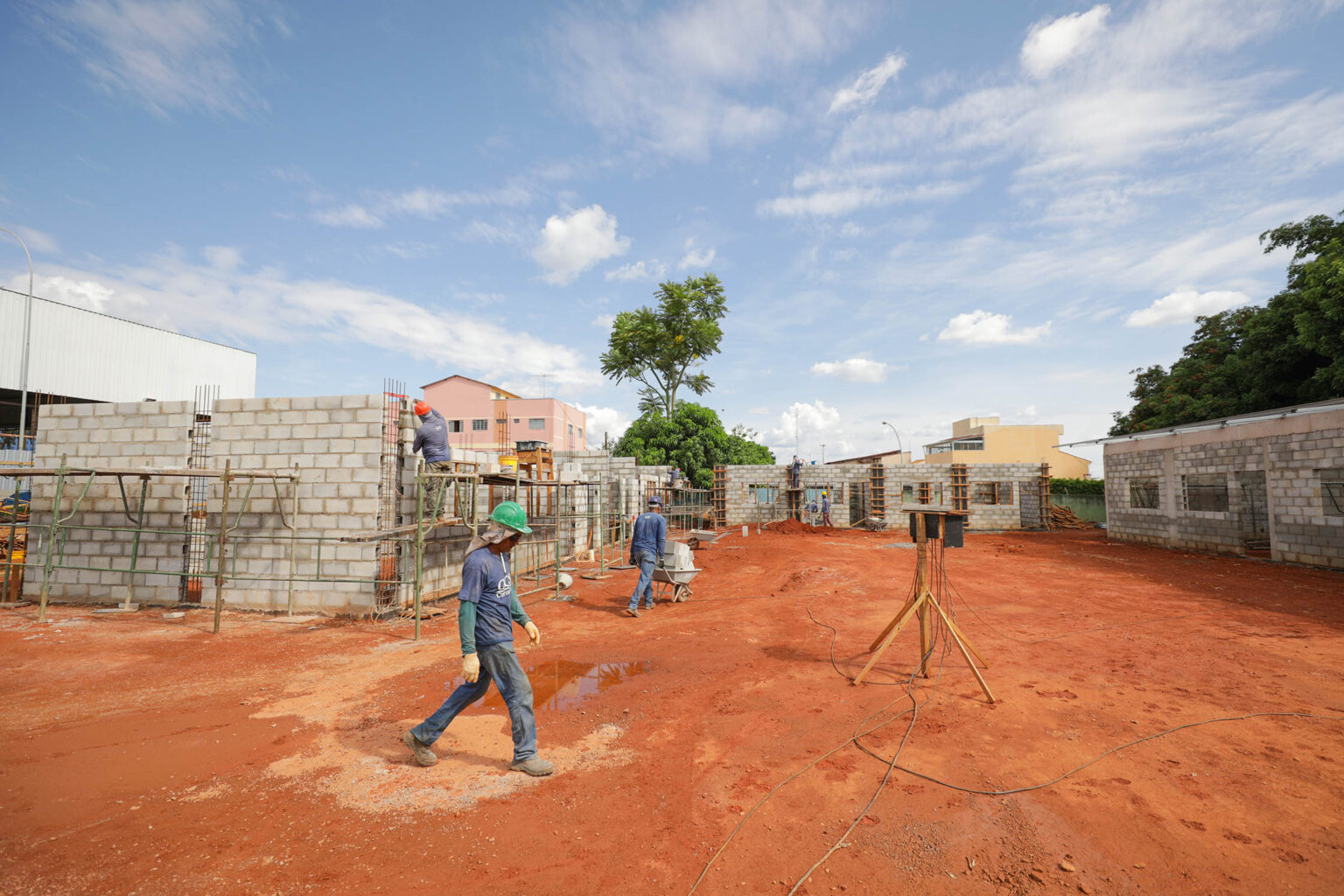“Em um dos módulos, a parte de alvenaria está totalmente pronta, a drenagem pluvial foi concluída, e agora iniciaremos a construção da cobertura e as instalações hidráulicas e elétricas”, explicou Gilberto Perillo, engenheiro da empresa responsável pela construção das salas na Escola Classe 8. A empresa é encarregada da execução de mais oito módulos nas regiões do Núcleo Bandeirante, Arniqueira, Águas Claras e Riacho Fundo.