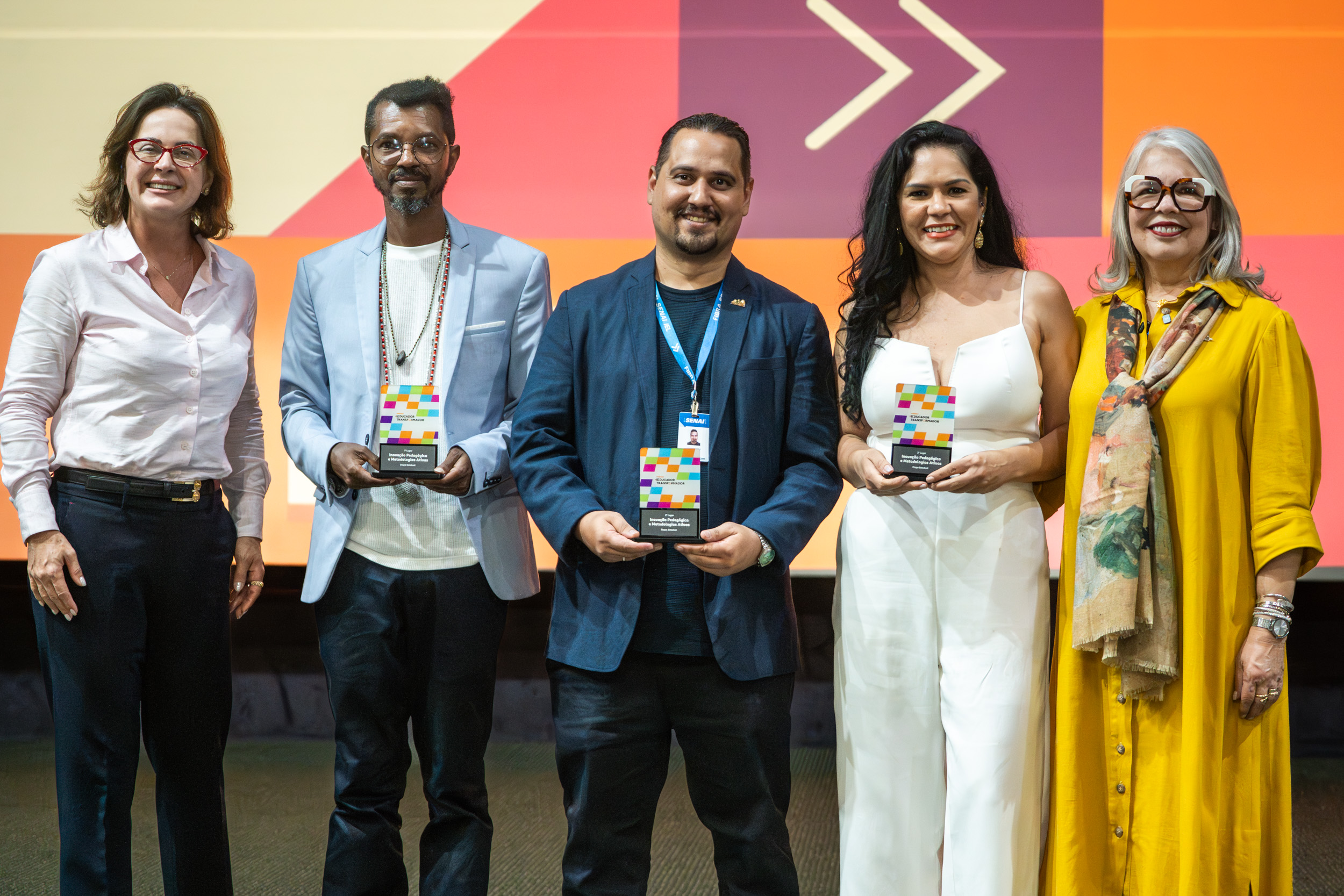 Na categoria Inovação Pedagógica e Metodologias Ativas, foram premiados os professores Antonio da Silva Santos Júnior, com o projeto “Quando as palavras criam o mundo: oralitura e identidade nos anos iniciais”; Cássio Ferreira Frazão, com “LabCrea: um modelo de educação ativa para o desenvolvimento de competências criativas e empreendedoras na economia criativa”; e Maria Leni Camelo da Costa, com “Astrogildo – E aí, meu parceiro? Um personagem que inspira leitura na socioeducação”.