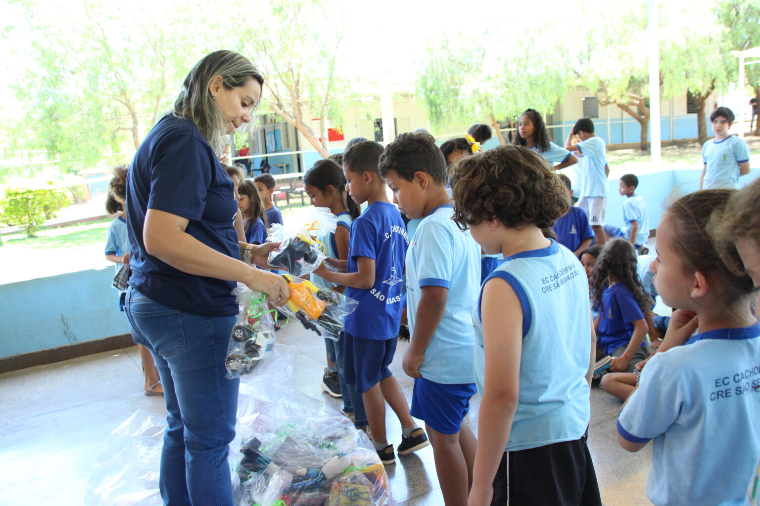 Alunos da Escola Classe Cachoeirinha, no Núcleo Rural Nova Betânia, em São Sebastião, na manhã desta quarta-feira (18), receberam do Governo do Distrito Federal (GDF), por meio da Empresa de Assistência Técnica e Extensão Rural do Distrito Federal (Emater-DF) e da Regional de Ensino de São Sebastião, brinquedos em comemoração ao Dia das Crianças.
