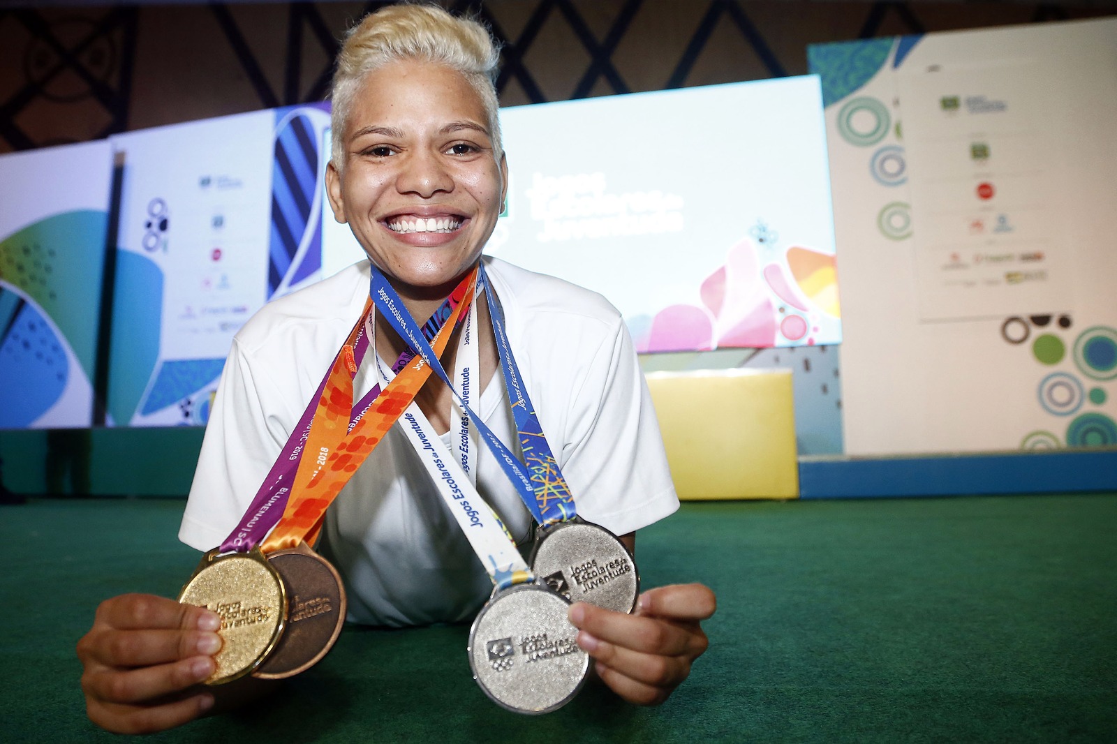 Objetivo e disciplina têm se tornado parte do vocabulário da estudante do Centro Educacional (CED) 01 do Itapoã, Maria Helena França, de 14 anos, desde que o wrestling entrou em sua vida. Moradora do Núcleo Rural Fazenda Velha, a pequena lutadora compôs o time brasiliense da modalidade que participou dos Jogos da Juventude 2025. As disputas de wrestling estiveram presentes na segunda fase da competição.