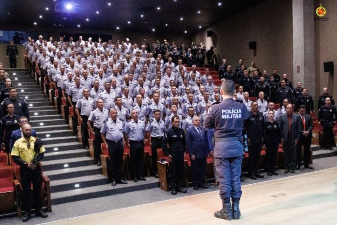 A Polícia Militar do Distrito Federal (PMDF) promoveu, na sexta-feira (27), a aula inaugural do Curso de Habilitação de Oficiais Administrativos, Especialistas e Músicos (CHOAEM) 2023-2024, realizada no auditório do Colégio Militar Tiradentes (CMT), localizado no Setor Policial Sul. A cerimônia contou com a participação de autoridades civis e militares.