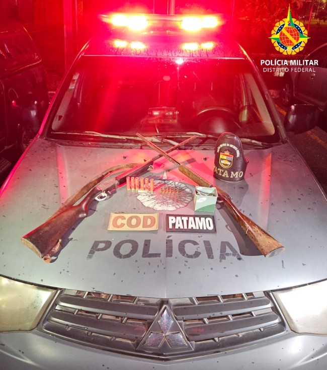 Policiais militares do Batalhão de Policiamento de Choque, em ação conjunta com a Polícia Militar de Goiás, apreenderam duas armas de fogo e munições no Núcleo Rural Ponte Alta, no Gama. O fato ocorreu por volta das 20h desta quarta-feira (22).