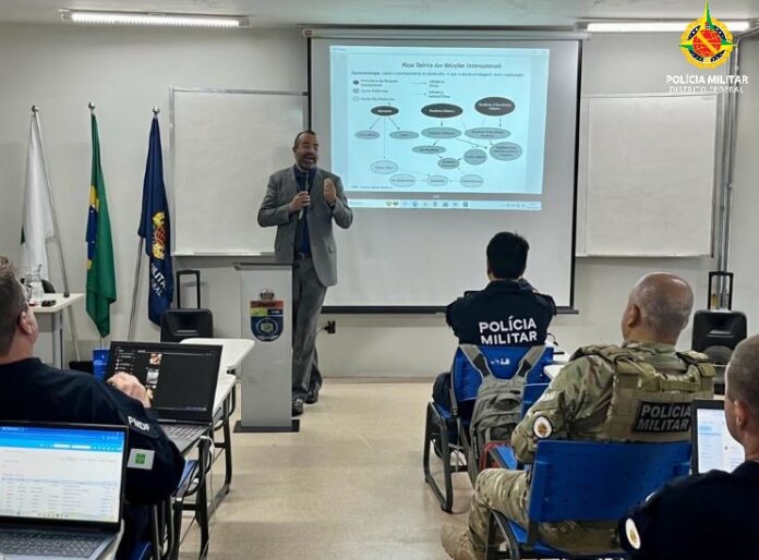 Nesta sexta-feira (24), o Curso de Altos Estudos para Oficiais – CAE/2023 – Pós-graduação Lato Sensu em Gestão Estratégica em Segurança Pública, recebeu um ciclo de palestras com instrutores da Escola Superior de Defesa (ESD), no âmbito da disciplina Geopolítica e Segurança Pública.