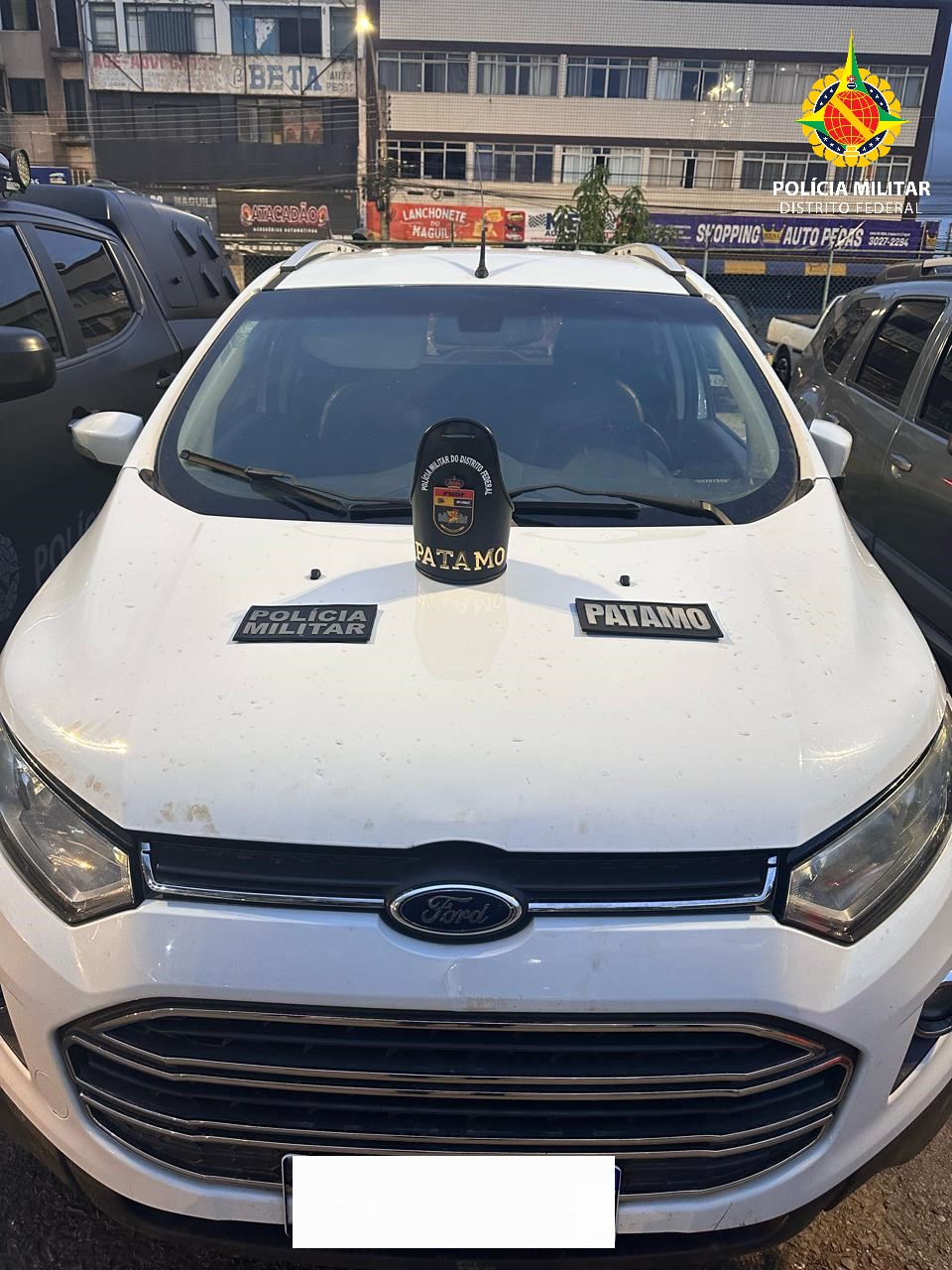 Uma equipe do Patamo reforçava o patrulhamento na QNL quando abordaram os suspeitos em um Ford/Ecosport. Ao vistoriarem o veículo, os policiais constataram que os sinais identificadores estavam adulterados. O veículo havia sido roubado em Planaltina no último dia 13.