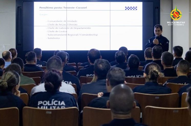 A Polícia Militar do Distrito Federal (PMDF) promoveu, na tarde de terça-feira (21), uma palestra para o Curso de Altos Estudos-2023 (CAE), para oficiais, onde o Coronel Adão Teixeira de Macedo, Comandante-Geral da PMDF, foi o palestrante. A turma é composta por 64 participantes, sendo 62 do Distrito Federal, 1 Tenente-Coronel da Polícia Militar do Estado do Acre (PMAC) e 1 Tenente-Coronel da Polícia Militar do Estado de Goiás (PMGO).