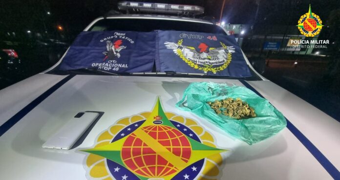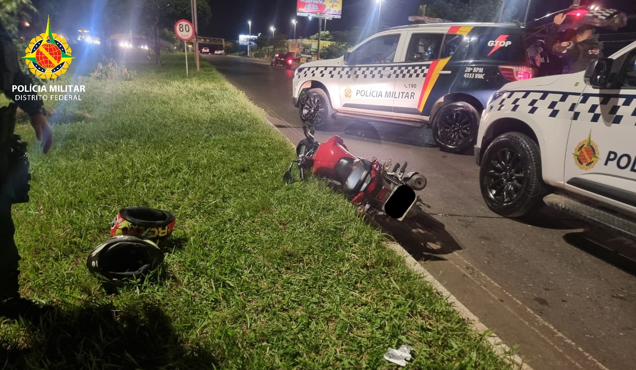 Policiais militares do Grupo Tático Operacional do 28º Batalhão (Gtop 48) detiveram um homem e um menor de idade após um acompanhamento pela EPNB, na noite deste sábado (14). A PMDF foi informada que a dupla estava em uma moto realizando a venda de drogas na Candangolândia. Os suspeitos foram vistos na altura do Km 5, seguindo para Samambaia.