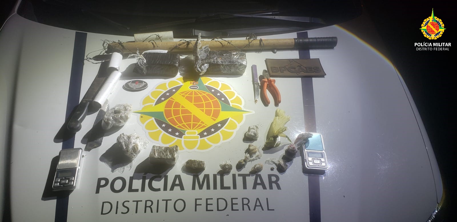 Em apoio aos policiais militares do Grupo Tático Operacional do 9º e 26º Batalhão (Gtop 29 e Gtop 46 respectivamente), a equipe do BPCães e o cão policial Paçoca encontraram em uma área de mata na Vila Roriz, no Gama, uma mochila contendo 1 Kg de maconha, 50 munições calibre 9mm, rádio comunicador, duas balanças de precisão e material para embalagem de drogas, por volta das 18h.