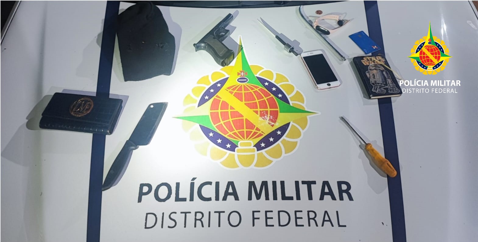 O homem levantou suspeita por andar com um volume na cintura e passou a ser monitorado pelas equipes policiais. Ele foi abordado no conjunto M portando um simulacro, um cutelo de corte, ferramentas, chave micha e uma máscara preta.