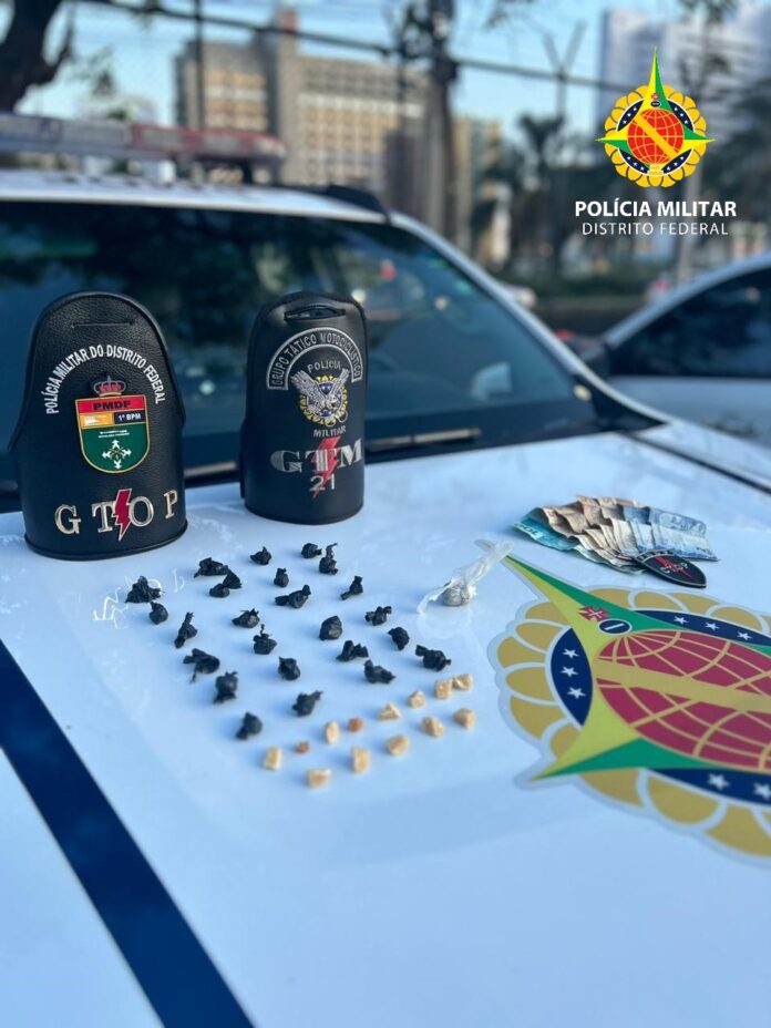 Um homem foi detido pelos policiais militares do Grupo Tático Operacional do 1º Batalhão (Gtop 21) comercializando drogas no Setor Comercial Sul, às 18h desta quarta-feira (6). Ele foi surpreendido em flagrante enquanto vendia drogas na galeria Nova Ouvidor.