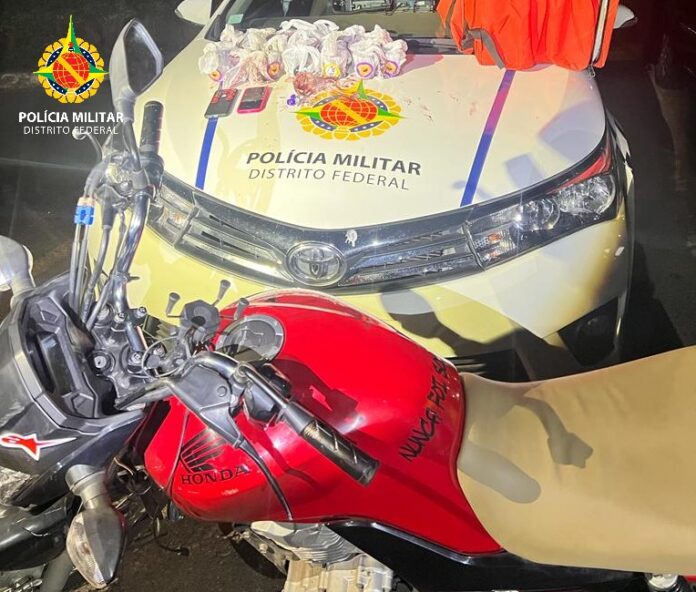 Além da carga de drogas, os policiais notificaram o entregador por dirigir sem possuir Carteira Nacional de Habilitação (CNH). Após a abordagem, o suspeito, a motocicleta e as substâncias apreendidas foram encaminhados à 26ª Delegacia de Polícia, para que medidas legais cabíveis fossem tomadas.