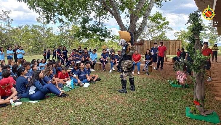 No local, foi realizado a apresentação teatral ( Lobo Guara: O Protetor do Cerrado) com informações sobre a preservação do meio ambiente e proteção da fauna, flora, recursos hídricos e de proteção de todos seres vivos e a importância da Educação Ambiental como ferramenta inibidora dos fatores exógenos no cometimento de crimes e infrações ambientais, ressaltando a importância e equilíbrio dos fatores bióticos e abióticos do ambiente em que vivemos e como solicitar a Polícia Militar em caso de ilícitos ambientais.