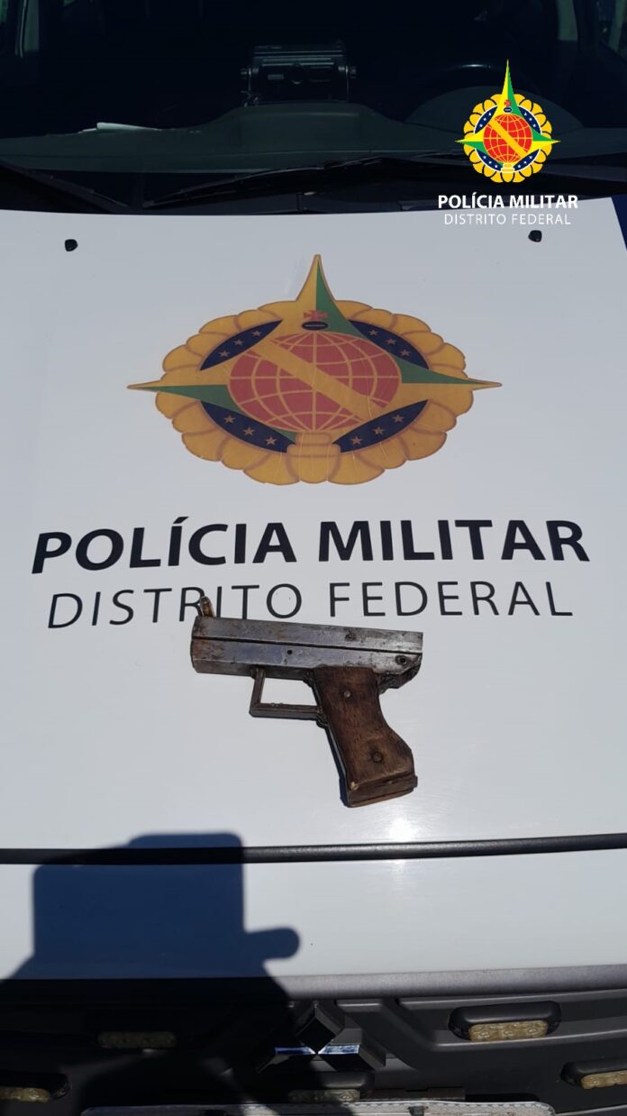 Feito contato no local, a solicitante informou aos policiais onde encontraria a arma. Os policiais apreenderam a pistola artesanal de fabricação caseira calibre .38 com uma munição intacta.