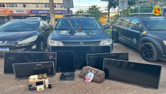 No local, os militares encontraram, um revólver calibre .38 com 6 cartuchos, três carros roubados, com placas adulteradas, aparelhos eletrônicos, joias e demais objetos das vítimas.