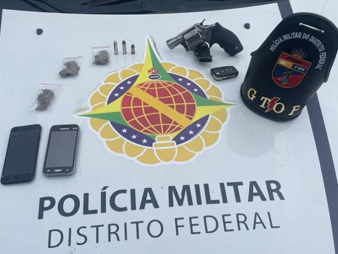 Um revólver calibre 38 foi apreendido durante abordagem em ponto de bloqueio, na noite desta segunda-feira (9), no Gama.