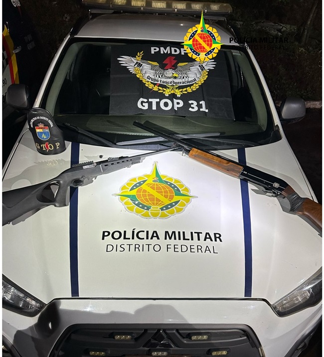 As armas foram apreendidas e apresentadas à 26ª Delegacia de Polícia para os devidos procedimentos legais.