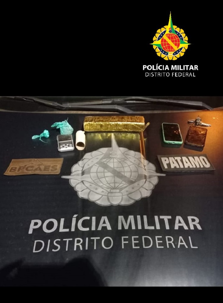 Os policiais do Batalhão de Choque com apoio do BPCÂES apreenderam um tablete de maconha e porções de cocaína na as 21hs, na QR 310 de Santa Maria, nesta sexta-feira (13).