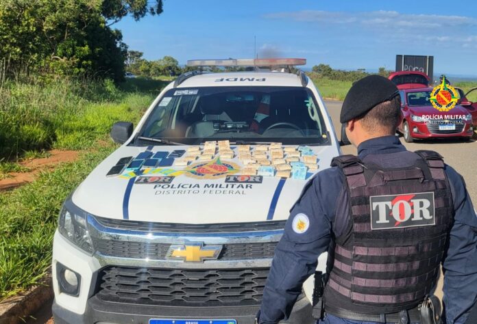 A equipe realizava ponto de bloqueio na área de Planaltina quando em abordagem observaram o nervosismo dos três homens.