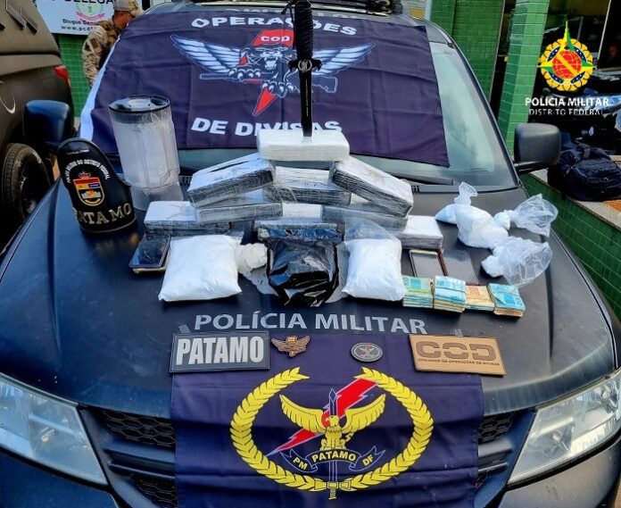 Operação conjunta entre as Policias Militares do Distrito Federal e Goiás aprendem grande quantidade de drogas em Santa Maria, na tarde desta quinta-feira (14).