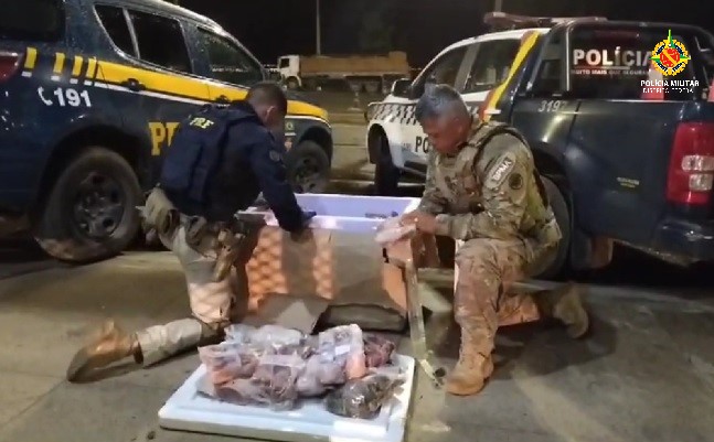 O Batalhão de Polícia Militar Ambiental (BPMA), em apoio à Polícia Rodoviária Federal (PRF), apreendeu cerca de 70 kg de carne de caça ilegal. O fato ocorreu na BR-060 durante uma abordagem a um ônibus na tarde desta segunda-feira (9).