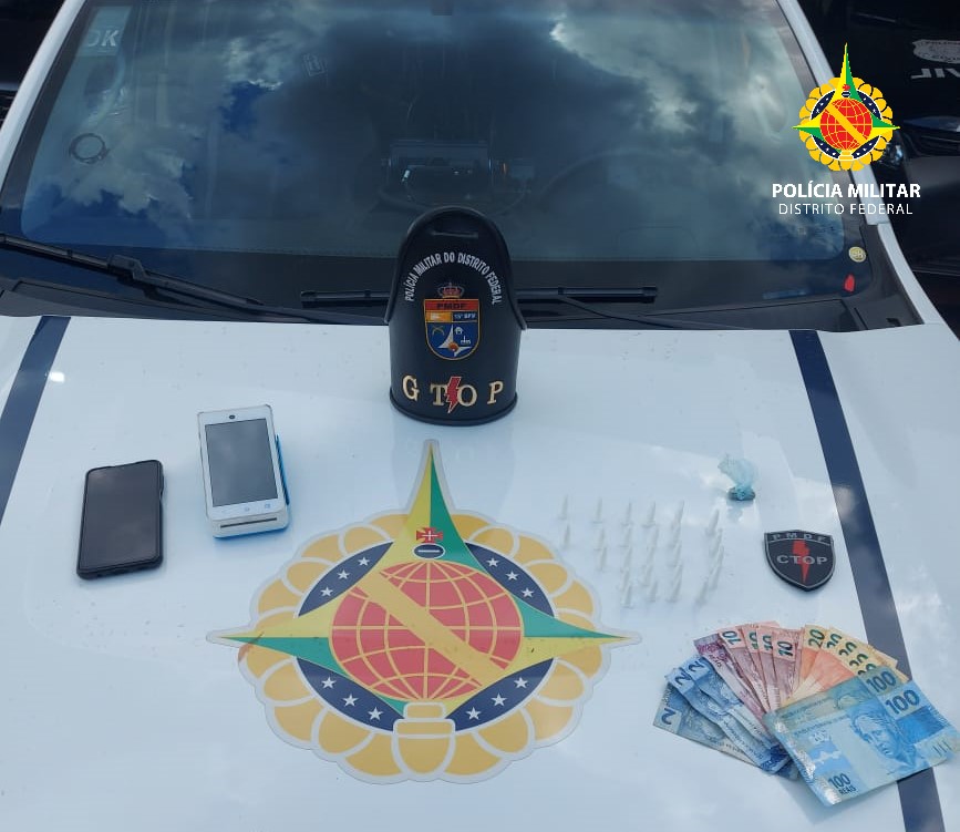 Policiais militares do Grupo Tático Operacional do 15º Batalhão (Gtop 35) prenderam um homem por tráfico de drogas no Setor Leste da Cidade Estrutural, às 15h35 desta sexta-feira (19). O dono de uma distribuidora não percebeu a presença da PMDF no local e foi visto passando um pino de cocaína para um cliente, este assim que viu o Gtop 35 colocou a droga na boca.