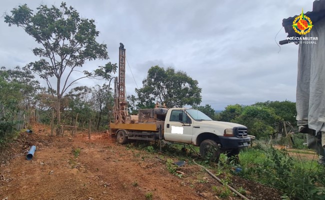 Policiais militares do Batalhão de Policiamento Ambiental impediram a construção irregular de um poço artesiano na área rural do Paranoá, por volta das 12h30 desta sexta-feira (5).