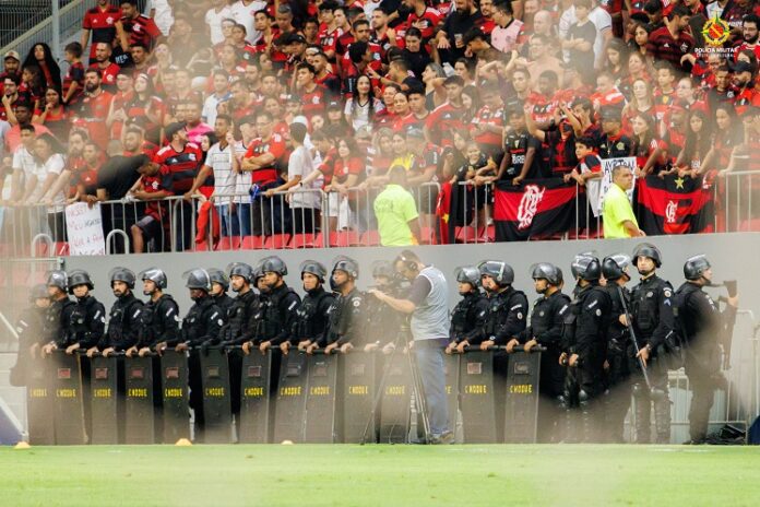 Os policiais militares desempenharam um papel fundamental na manutenção da ordem pública, assegurando a integridade do patrimônio público e privado, bem como a tranquilidade e segurança dos torcedores presentes, evitando qualquer tipo de transtorno. Diversos materiais, incluindo capacetes, garrafas, copos, guarda-chuvas, entre outros, foram proibidos no local, visando garantir a segurança de todos os presentes.
