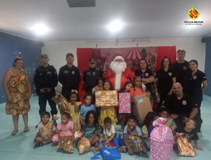 A equipe do PROVID do 8° BPM, juntamente com a Polícia Civil e o Papai Noel do Corpo de Bombeiros do DF, nesta sexta-feira (8), proporcionaram um dia especial às crianças da Escola Classe 68, em Ceilândia.