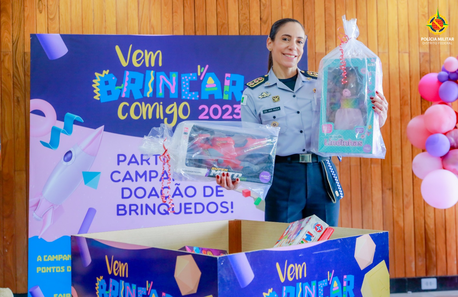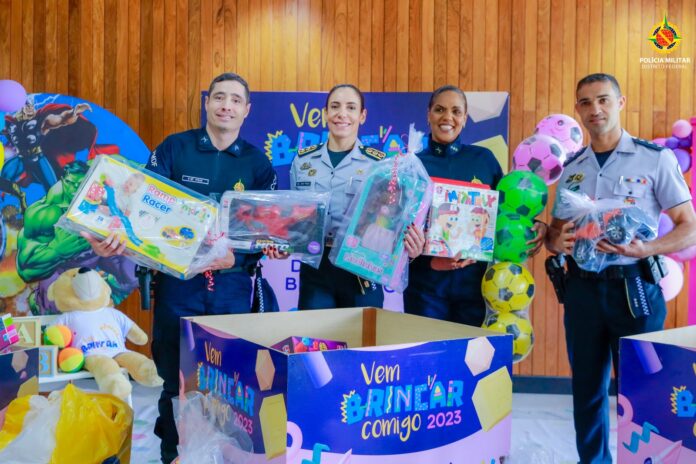 Nesta terça-feira (10), a Polícia Militar do Distrito Federal marcou presença com a entrega de centenas de brinquedos arrecadados por meio da Campanha Vem Brincar Comigo, uma iniciativa inspiradora idealizada pela Primeira-Dama Mayara de Noronha Rocha.
