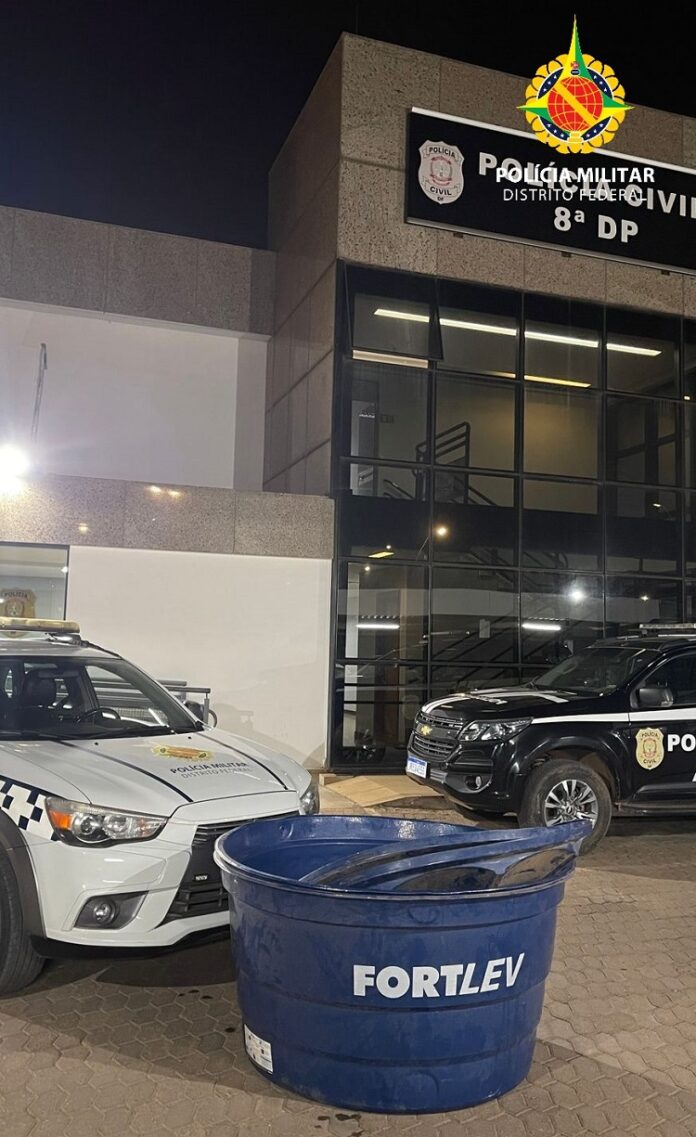 Policiais militares do 17º Batalhão de Aguas Claras prenderam dois homens por furtarem uma caixa d’agua em Vicente Pires, as 21h40 de sexta-feira (22)
