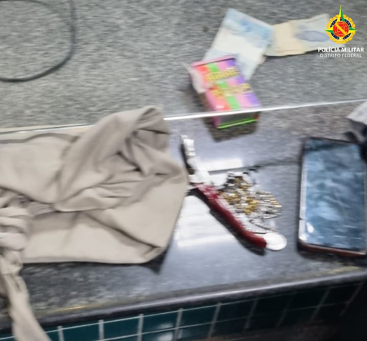 Durante a ação policial, foram encontrados com os suspeitos um saca-rolha utilizado para ameaçar a vítima, dois celulares, uma porção de crack e dinheiro. O outro homem já possuía passagens pela polícia e estava com tornozeleira eletrônica, tendo sido solto no dia anterior.