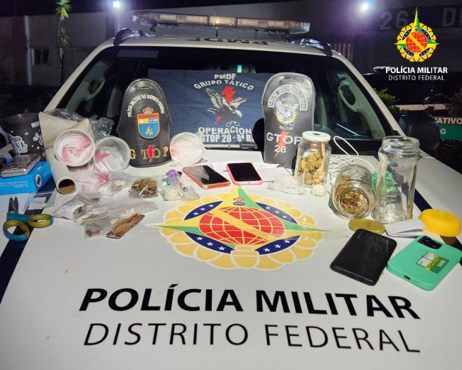 Policiais militares do Grupo Tático Operacional do 8º Batalhão (Gtop 28) prenderam dois homens acusados de tráfico de drogas e localizaram uma mulher foragida da justiça, também por tráfico de drogas. A ação ocorreu por volta das 22h desta quarta-feira (14) em Samambaia.