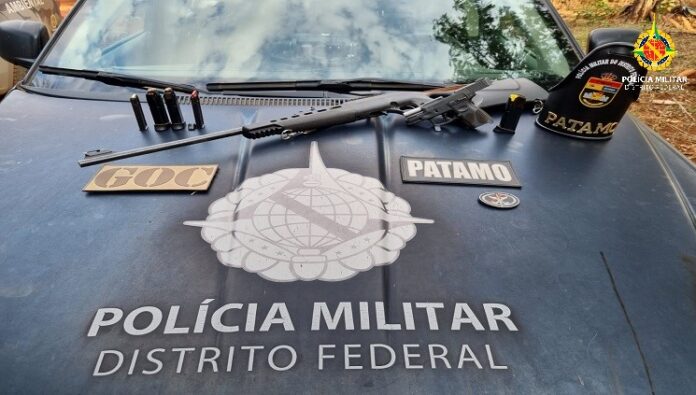 Os policiais militares do Patamo e do Grupamento de Operações do Cerrado (GOC) prenderam um homem por porte ilegal e disparo de arma de fogo neste domingo (8), por volta das 16h, em Planaltina.