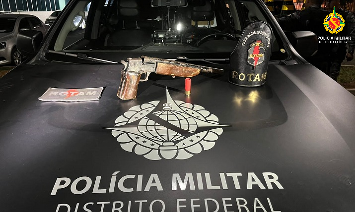 Em Águas Claras, um homem foi detido na avenida Araucárias portando uma pistola Taurus, calibre .40.