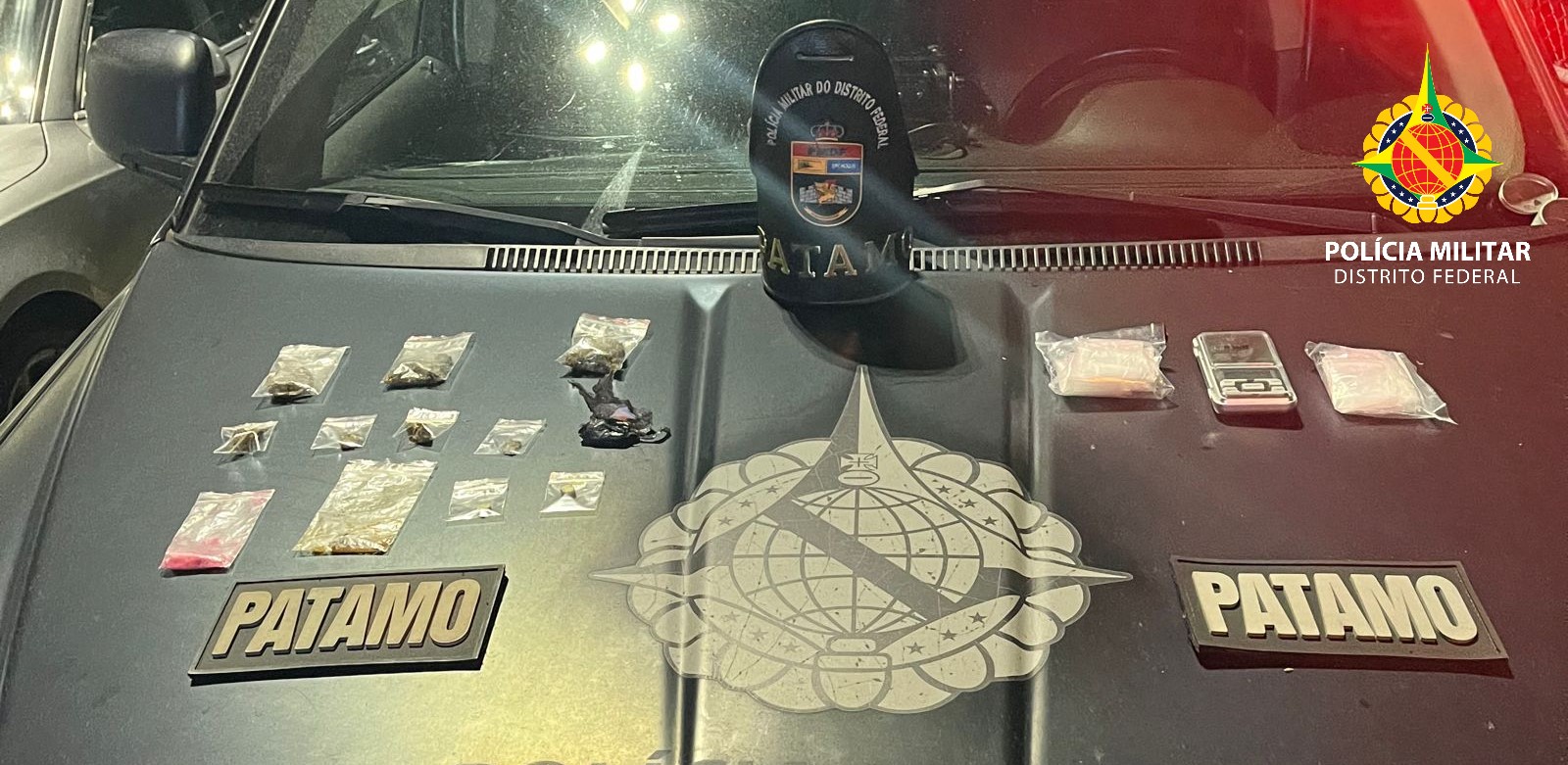 Em patrulhamento os Grifos de PATAMO ALFA do BPCHOQUE/PMDF lograram êxito em prender um indivíduo por tráfico de drogas na QNA 48, em Taguatinga.