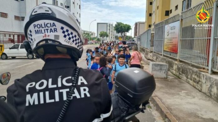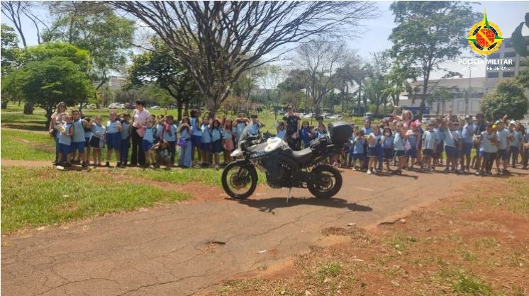 As equipes de motociclistas do Batalhão de Policiamento de Trânsito (BPTRAN) e Batalhão de Policiamento Escolar (BPESC) realizaram o acompanhamento dos alunos da Escola Classe 04, do Cruzeiro, na “Caminhada Pedagógica”, nesta terça-feira (10). O percurso teve início no próprio colégio, rumo ao Terraço Shopping (localizado na SHC AOS Entrequadras 2/8 lote 5- Octogonal Sul), feito por 230 alunos do 2° ao 5° ano do ensino fundamental.