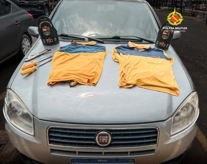 O que chamou atenção dos policiais foi que todos estavam vestidos com duas camisas e duas calças, tinham várias ferramentas e uniformes dos correios.