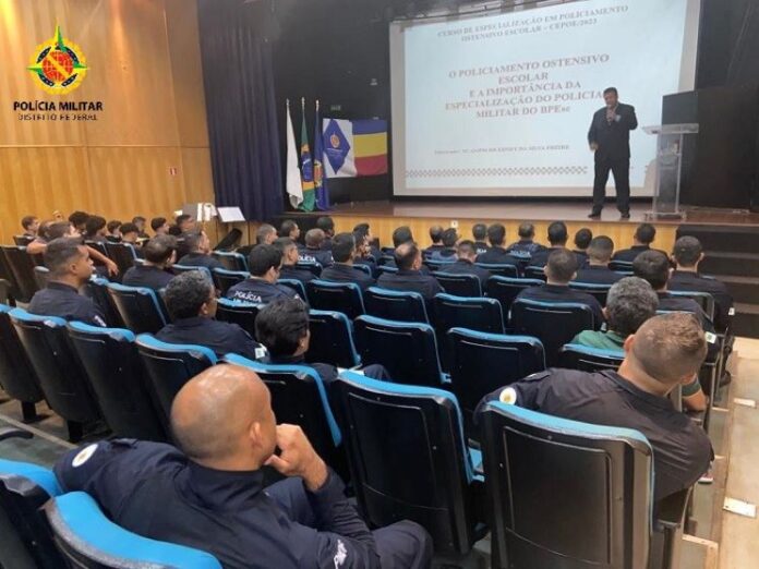 A Polícia Militar do Distrito Federal (PMDF) realizou uma solenidade referente a aula inaugural do 9° Curso de Especialização em Policiamento Ostensivo Escolar (CEPOE), na tarde desta terça-feira (10), no auditório do Colégio Católica de Brasília (localizado na QS 07, Lote 01, Taguatinga Sul). O evento, promovido pelo Batalhão de Policiamento Escolar, (BPESC) contou com a participação de autoridades militares.